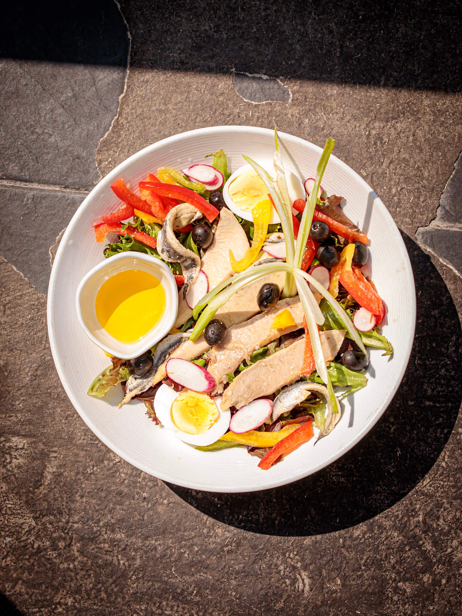 Cuisine de brasserie, plats faits maison, cocktails bien frappés — ici, on partage un déjeuner en terrasse, un apéro entre amis ou un dîner face au coucher du soleil.