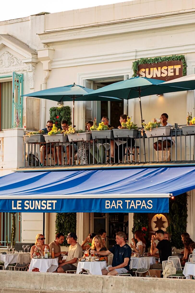 Face à la Promenade des Anglais, Le Sunset vit au rythme des verres qui tintent et des assiettes qui réconfortent.